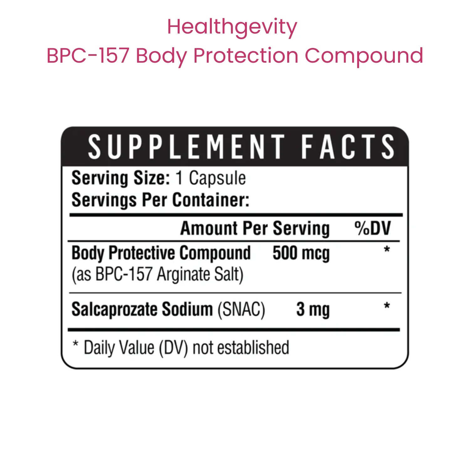 Healthgevity BPC-157: A peptide-based supplement studied for its regenerative potential in tissue repair, inflammation support, and gastric protection. May aid tendon, joint, and gut recovery.